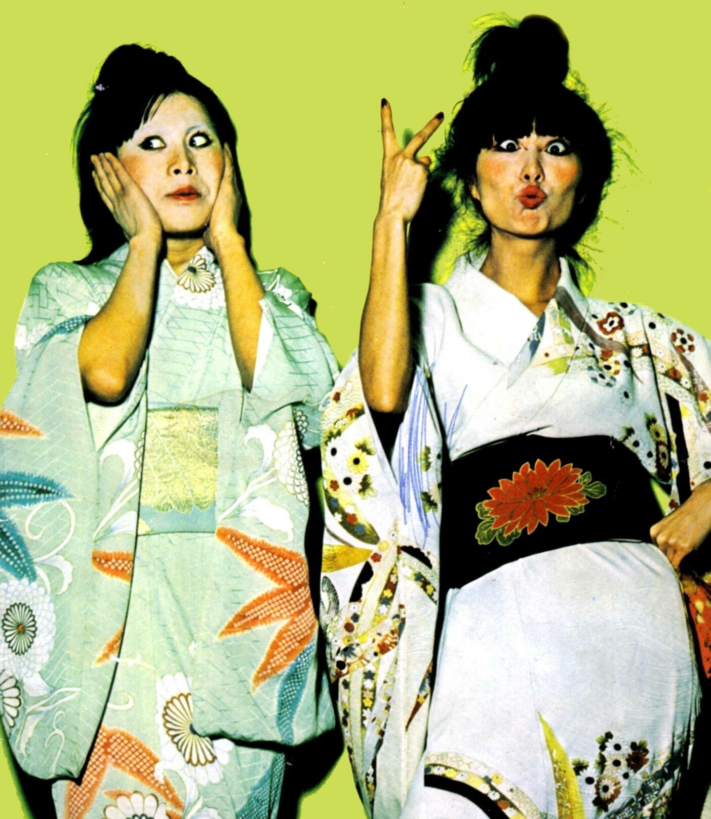 What led you to become a model on the cover of Kimono My House? Michi: We were both actresses touring with a Japanese theatre company in Europe and the USA. My husband Joji Hirota was musical director. A record company (Island records) approached our director looking for Japanese women, and we were asked to do the modeling. I am the woman on the right (with a fan).