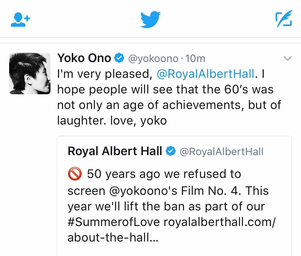 In March 1967, plans for a Royal Albert Hall debut screening were disrupted. Yoko was surprised to learn that her film did not sit well with the film censors. It was deemed ‘not suitable for public exhibition.’