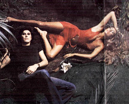 The fourth Roxy Music album, Country Life, was titled in parody of the popular British magazine of the same name. It was also influenced by the seedy Christine Keeler showgirl/government scandal of 1963. (Christine Keeler actually appears alongside Mandy Smith in the promotion video for Bryan Ferry’s 1987 single Kiss and Tell.) The cover photo featured two German models that Bryan had met in Portugal; Constanze Karoli (sister of Michael Karoli of Can) and his girlfriend Eveline Grunwald. They are wearing semi-transparent lingerie, standing in front of a pine bush. In America, the album was sold in an opaque plastic wrapper when retailers refused to display the cover. Later, an alternate cover featuring just a shot of the foliage was used. According to Antony Price, The girls are meant to be fashion models that have run away from an estate, caught in the headlights of a car.