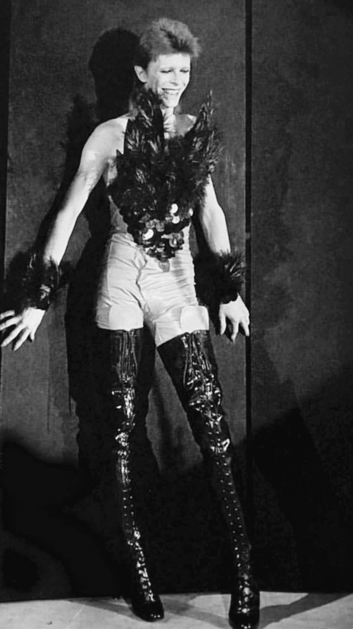 Never in my wildest dreams did I think that I would ever see the shroud of Turin with my own eyes! Well, actually it was not really a shroud. It was more like a black spider-webbed body suit with one shiny gold sleeve and one shiny gold leg, and two oversized glittery gold mannequin hands wearing black nail polish clutching the chest area. And it was not actually from Turin, but from London. It was by David Bowie in 1973, singing ‘The Jean Genie’ on The Midnight Special during his 1980 Floor Show. (What ever happened to the censored third hand?!)