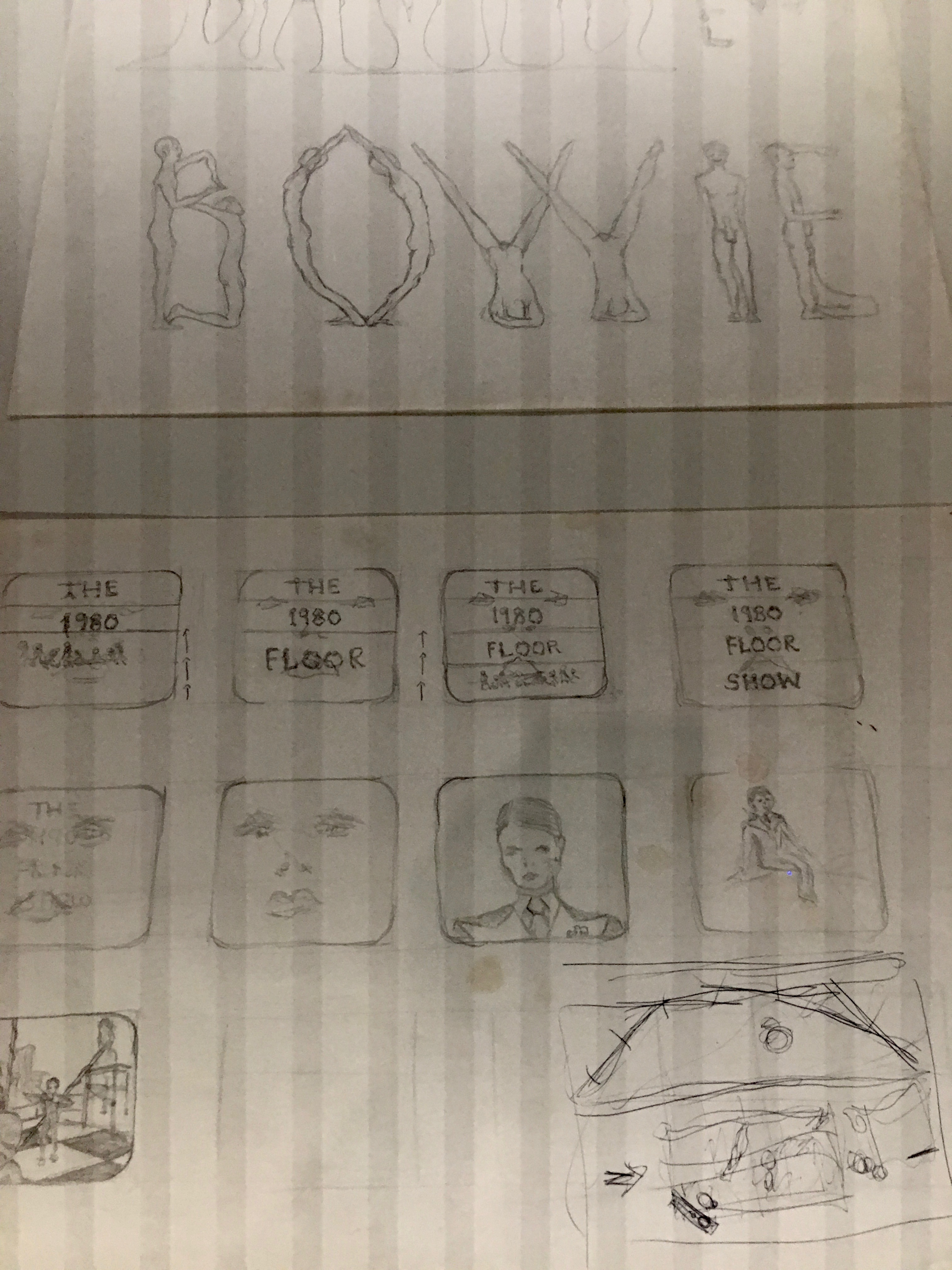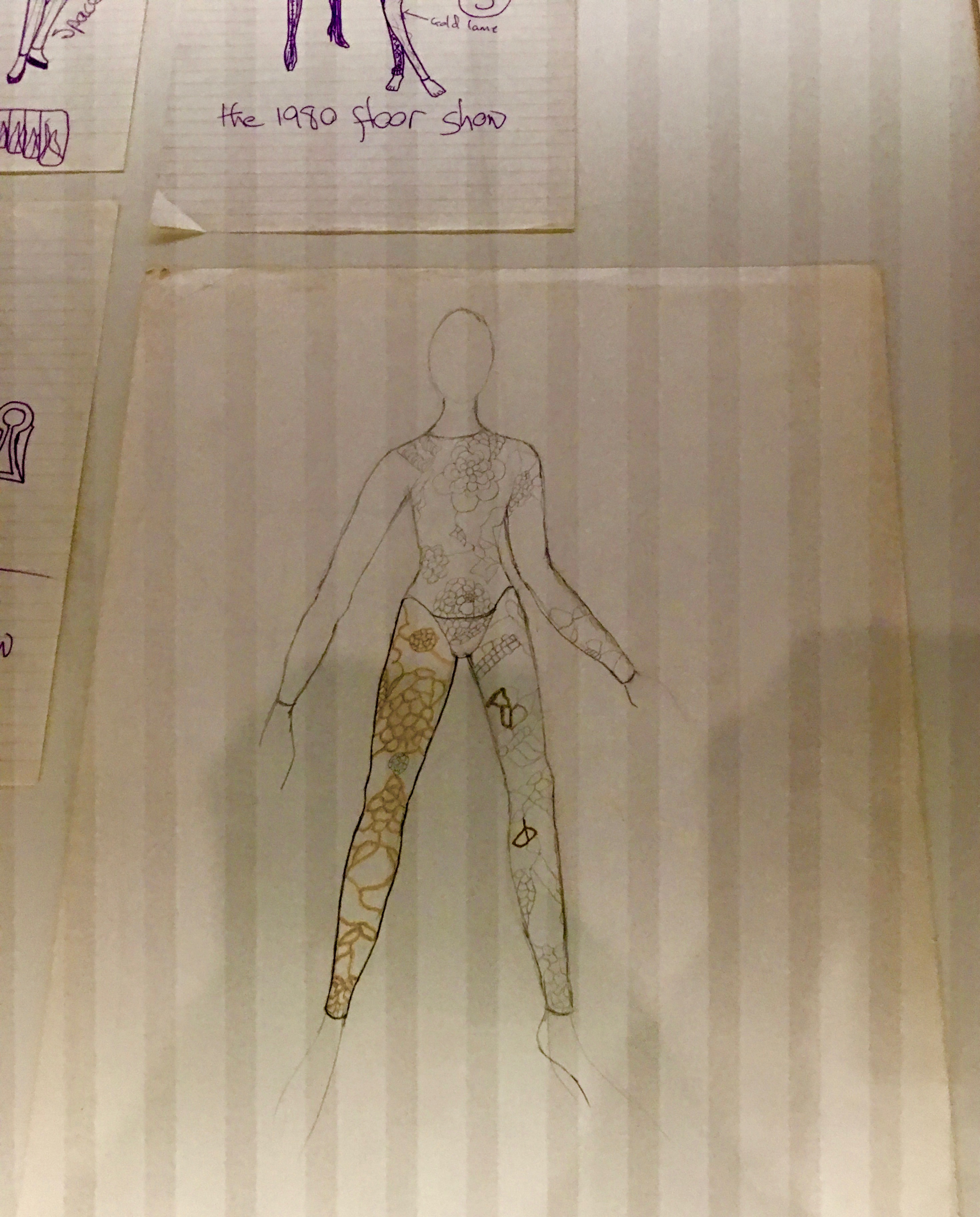 Bowie’s original sketches for the 1980 Floor Show costumes and set design: