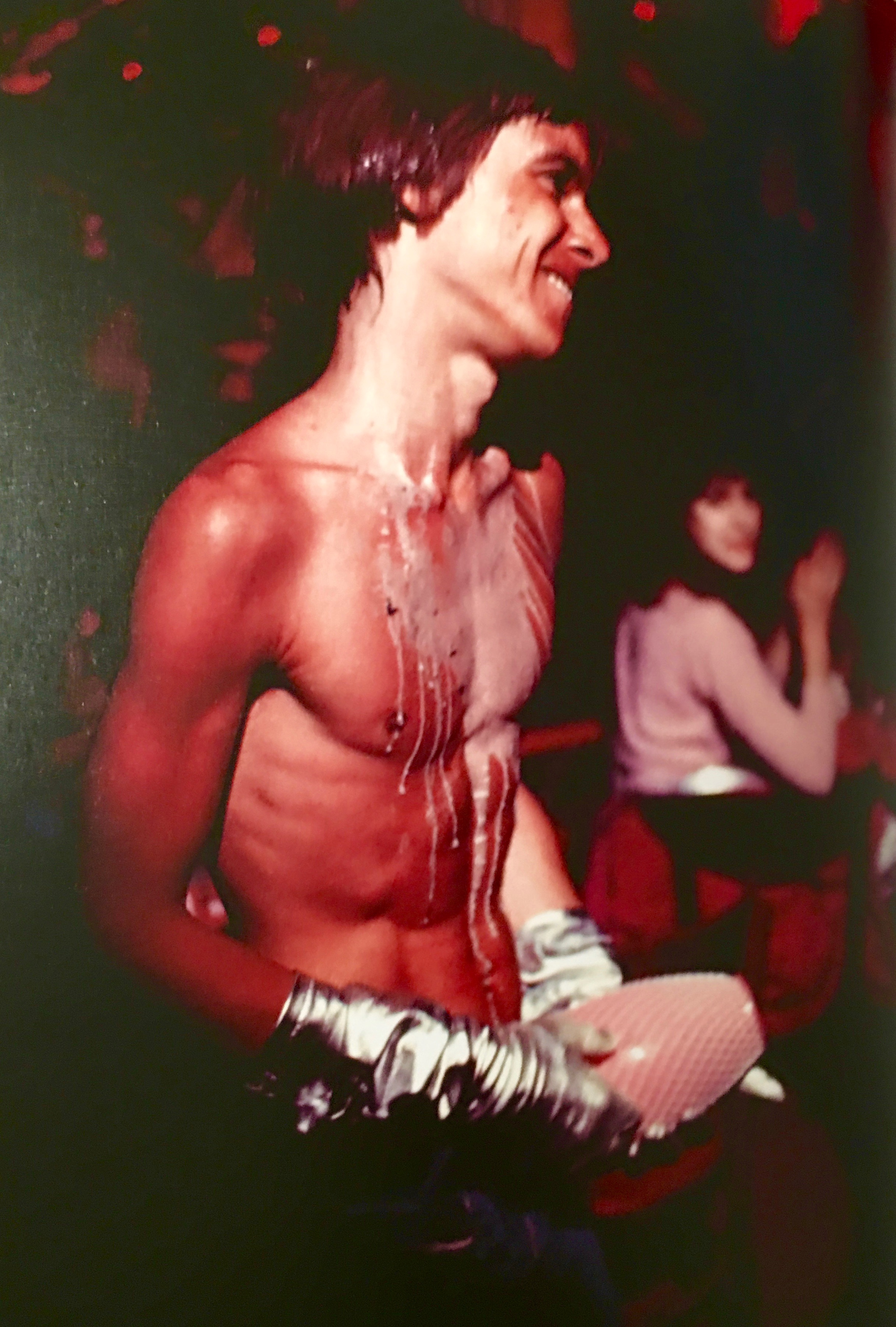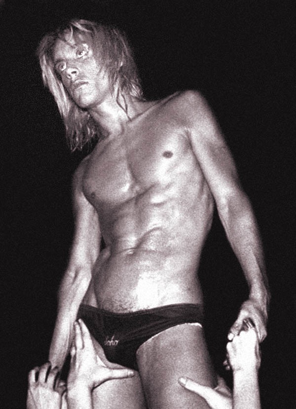 Iggy: “Because of deficiencies in the lighting system, to be visible I used to pour baby oil over myself then pour glitter all over my body, just to catch the light. It spoke of refractions to come; it spoke of resonance.”