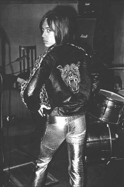 This was a Bill Whitten creation – a super low-waisted studded one-legged sarong look. The outfit, worn with thigh-high boots had one matching fingerless glove. It was sometimes worn with a matching wrap-around top or a breast- plate. Whitten also created James Williamson’s Dracula jumpsuit. This was for the autumn 1973 tour, probably worn for the first time at Max’s on July 30.