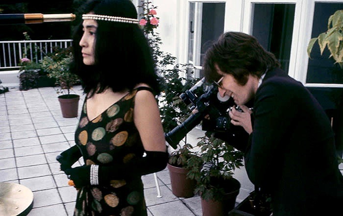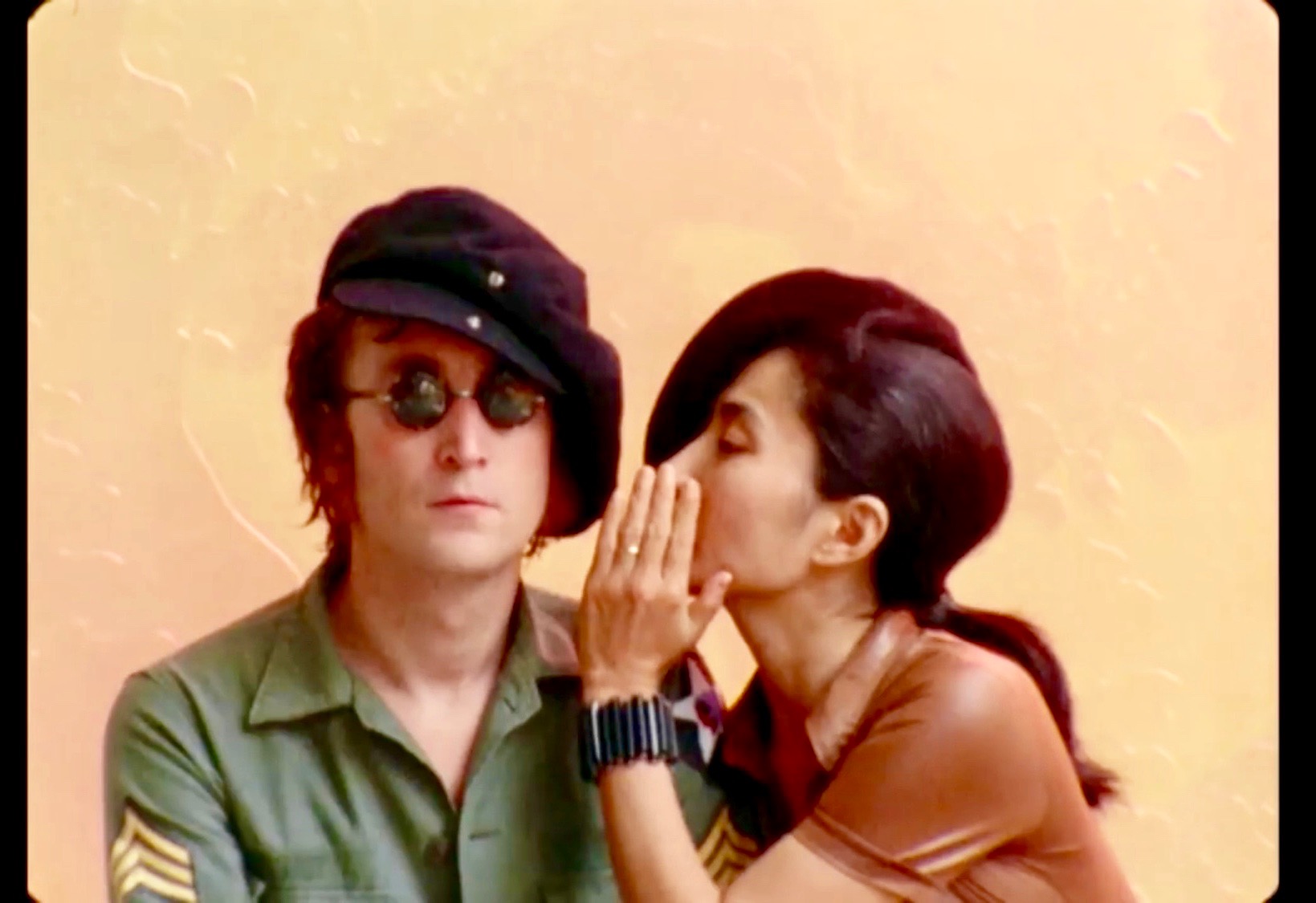 Scenes and vignettes with celebrities are mixed in, including party guests Andy Warhol and Miles Davis, Jonas Mekas, Dick Cavett, Fred Astaire, George Harrison and Jack Palance. We can actually hear the words when some of them perform Yoko’s Whisper Piece.