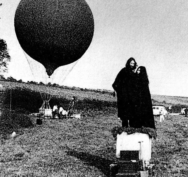 The film starts with John and Yoko (wearing black capes and hoods) watching a hot air balloon being inflated. The location is the snowy market square in the countryside village of Laverham in Suffolk, England. Their cameraman Nicc Knowland shot still photos of the couple in the grounded balloon before they exited the basket prior to the launch.