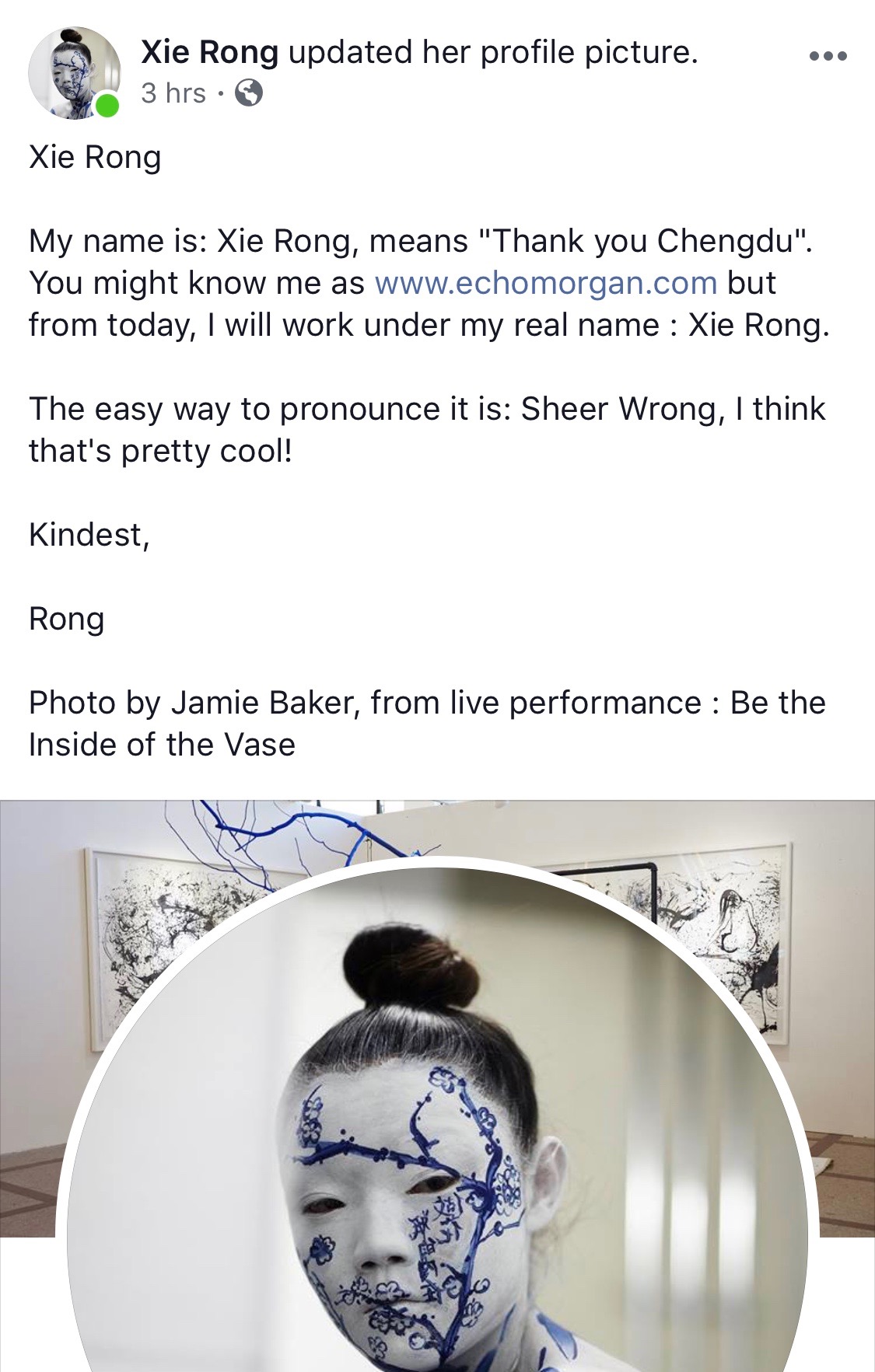 Concerned museum patrons approached Echo the following day, asking if she was OK. This was her final performance as Echo Morgan. She will use her name Xie Rong from this point forward.