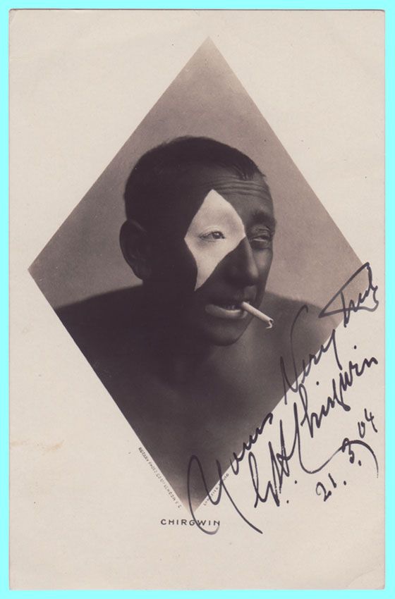 George H. Chirgwin (1854-1922) was a British music hall star billed as ‘the White-Eyed Kaffir’, a black face minstrel. (Kaffir is a derogatory term for black people). Rather than applying full blackface makeup, Chirgwin adapted his look by painting a large white diamond shape over his right eye. Chirgwin acted in the first Royal Variety Command Performance (1912). His varied musical accomplishments, singing in a falsetto voice and playing a one-string fiddle. His act included cockney material, songs and sketches. n the 1890s, Chirgwin appeared in two non-fiction films. He wrote and acted in a silent drama film called The Blind Boy. A recording was released posthumously on the Edison Bell label on a 78 rpm record. In later life, he was mine host of a pub in Shepperton, Surrey.
