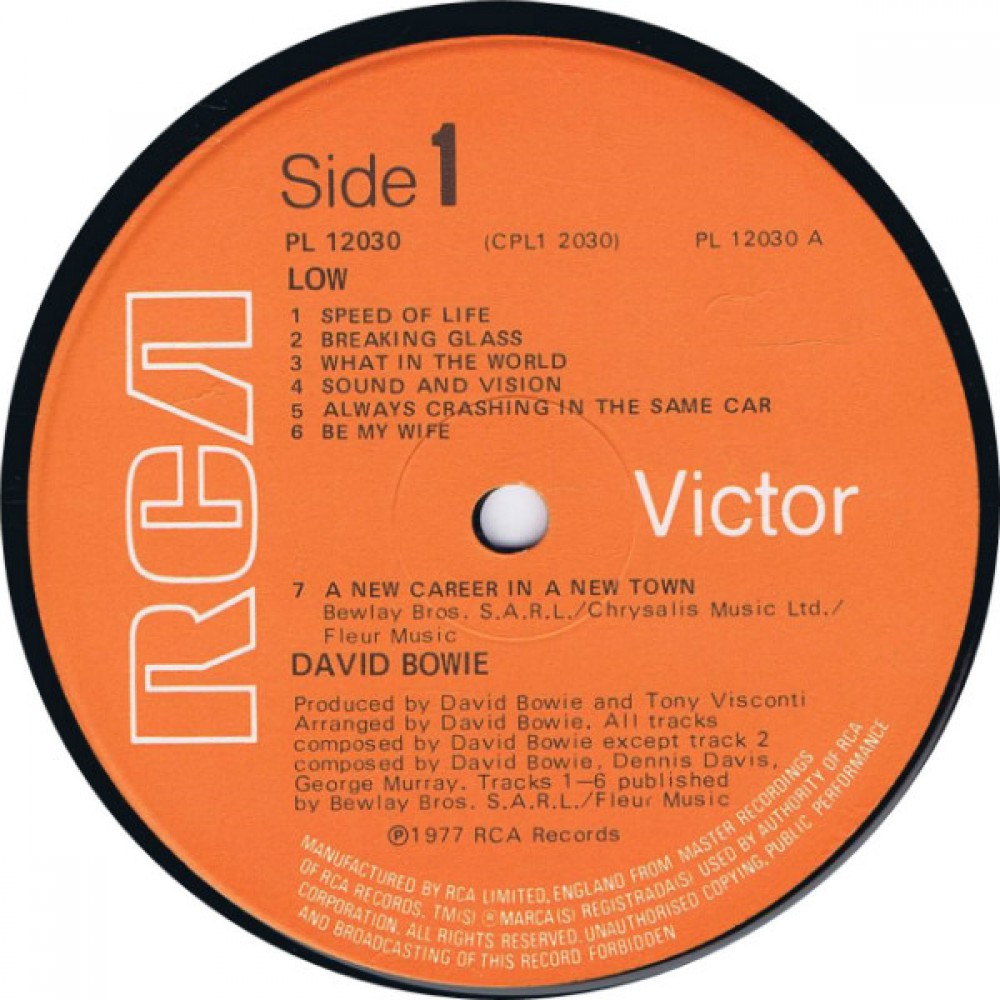 Although the label for Low was black – the flaming sunset background of the album’s cover and the early orange RCA labels influenced the color scheme in the branding of the David Bowie Is museum exhibition which originated at the V&A in 2013 and travelled the world for five years.