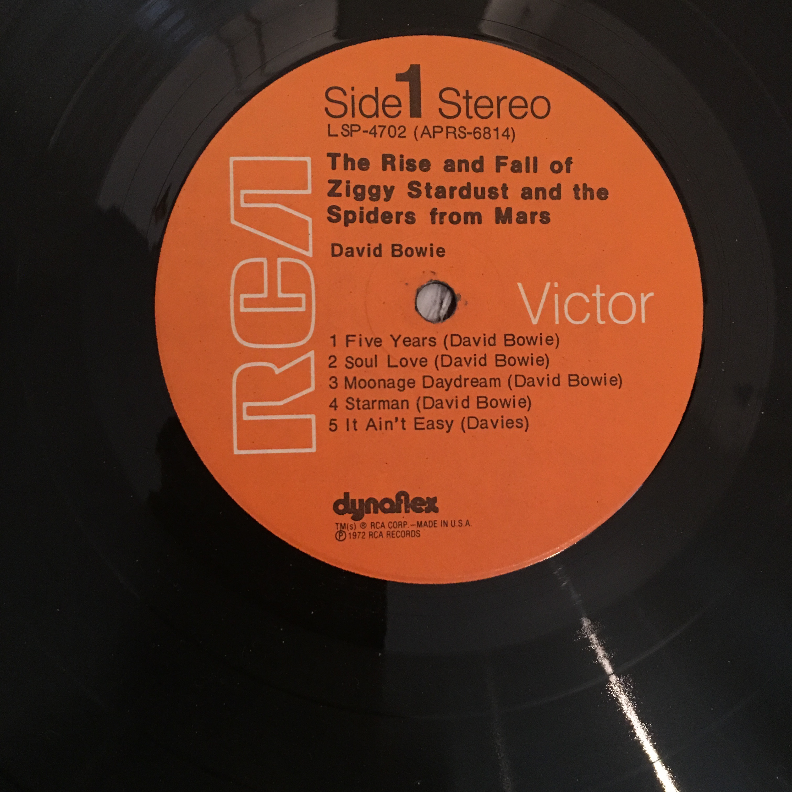 I love this. Absolutely fascinating. I’ve seen the Dynaflex logo for years and never knew what it referred to. I always felt RCA LPs had great sound. I had black label reissues of Lust For Life and The idiot that you could practically roll up into a tube they were so flexible – would they be Dynaflex, I wonder? They were ’80s pressings, I’d imagine, with the great big ‘PRODUCED BY DAVID BOWIE’ sticker on The Idiot. (Coincidentally – there was a nasty rasping sound about a couple of minutes into Lust For Life – I thought my copy was damaged but I’ve noticed the same sound on other copies). Part of my education in the finer things was the fortuitous inheritance of older siblings abandoned record collection – including a green label Ziggy (price code YY, if memory serves), Scary Monsters, Heroes, Lodger, Italian Grey Label Diamond Dogs (someone walked off with it when I was deejaying), and Station To Station, whose label I picture as orange, but I don’t have it handy to check. Later, now long gone record shop and record fairs furnished ultra cheap copies of Aladdin, Hunky, Low, Pinups, etc. My apologies, I’m rambling … but it was magical – laying on the bed on a summer’s day, curtains drawn but with flecks of sunlight bleeding through like fiery jewels, distant sound of kids playing – and total immersion in the worlds Bowie conjured on those records. I’ve been to meditation classes – good, but only a fraction of what the youthful imagination could do. I loved this article, I love your blog, wonderful.