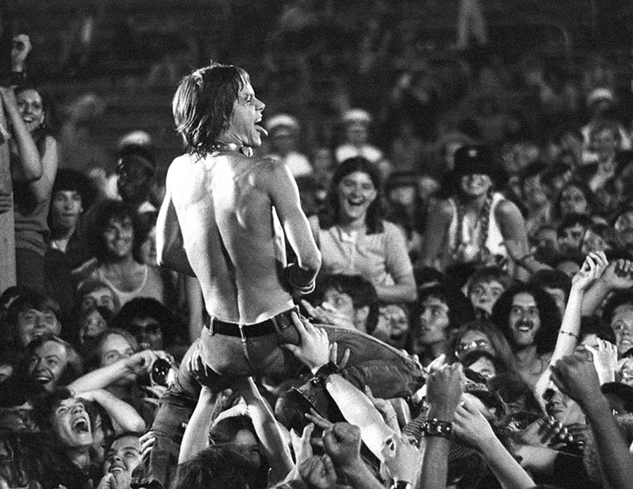 Iggy and the Stooges notoriously received varied menu of edible missiles hurled at them from the audience; eggs, beer, condiments and delicacies that could be combined to make a nice salad. Iggy would often volley back his own arsenal in response. The actual impact of these items can be clearly heard on the final Stooges album, Metallic K.O.