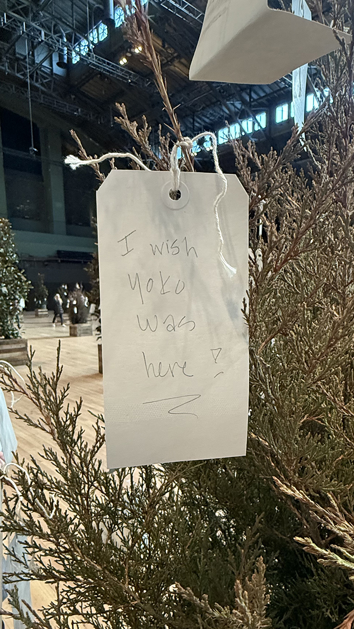 There are 92 Yoko Ono Wish Trees on exhibit at the Park Avenue Armory in NYC, prefacing the artist turning 92 this week. Symposiums on Yoko’s life and work spanned two days and there were two tribute concerts.
